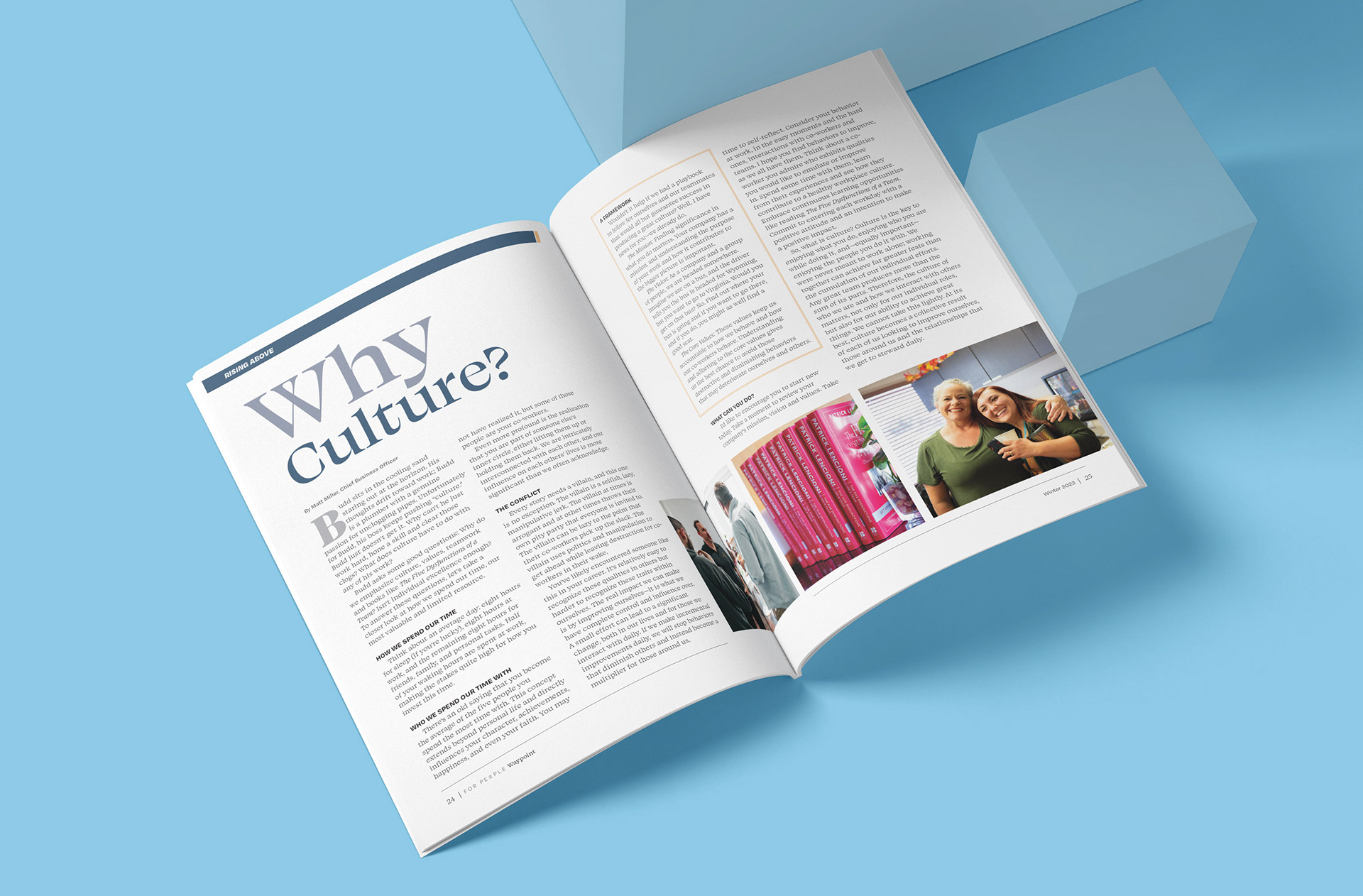 Art direction, editorial and ad design. An annual newsletter for employees of the For People companies, celebrating company culture and achievements.