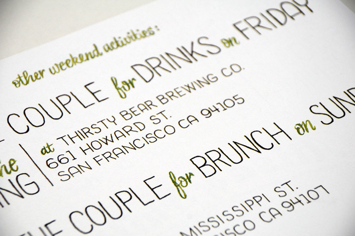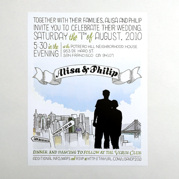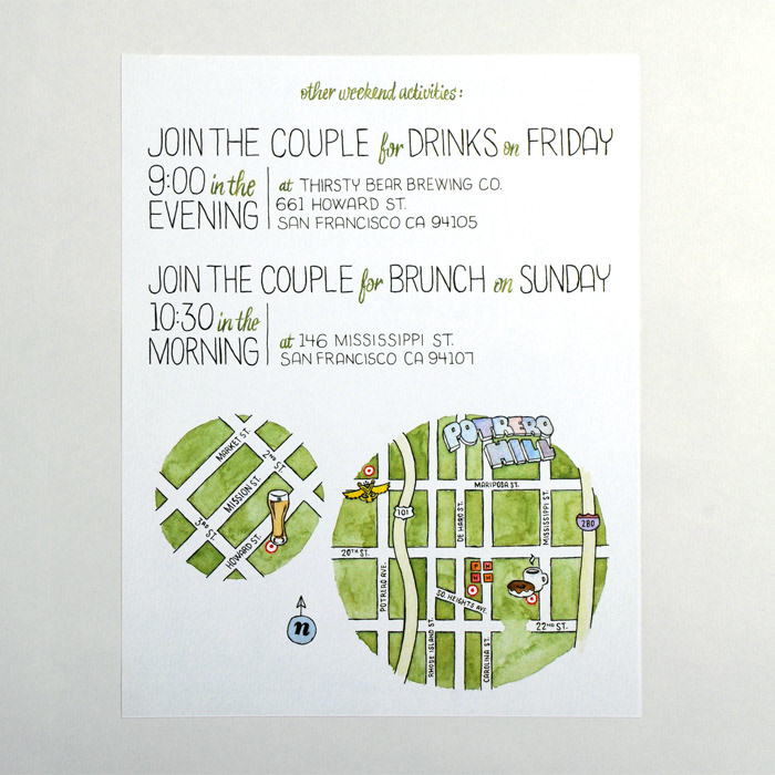 This hand-drawn & lettered invitation showcases the couple’s love for their neighborhood.